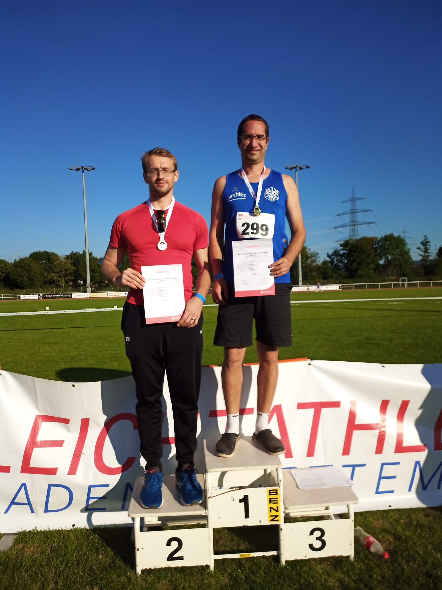 Michael Gomringer, er startete in der Altersklasse M 40 bei 400 m und kam mit einer Zeit 1:01,26 auf Platz 2 und bei 5000m, dort wurde er mit einer Zeit von 19:41,74 ebenfalls Zweiter