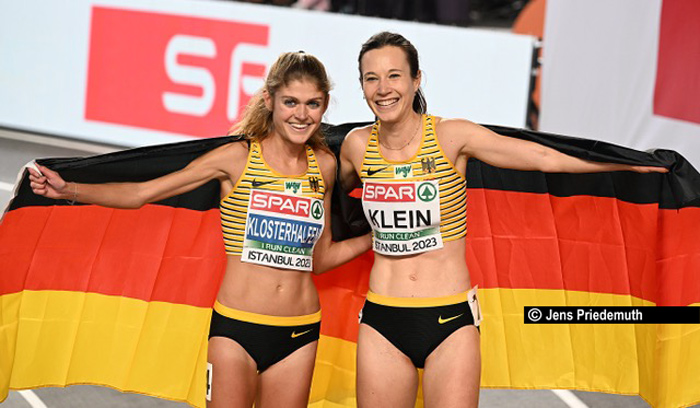 Ihren ersten internationalen Titel holte sich Hanna Klein (LAV Stadtwerke Tübingen) am zweiten Tag der Hallen-Europameisterschaften in Istanbul. 150 Meter vor dem Ziel zog sie an der bis dahin führenden Konstanze Klosterhalfen vorbei und holte die erste Goldmedaille für das DLV-Team.