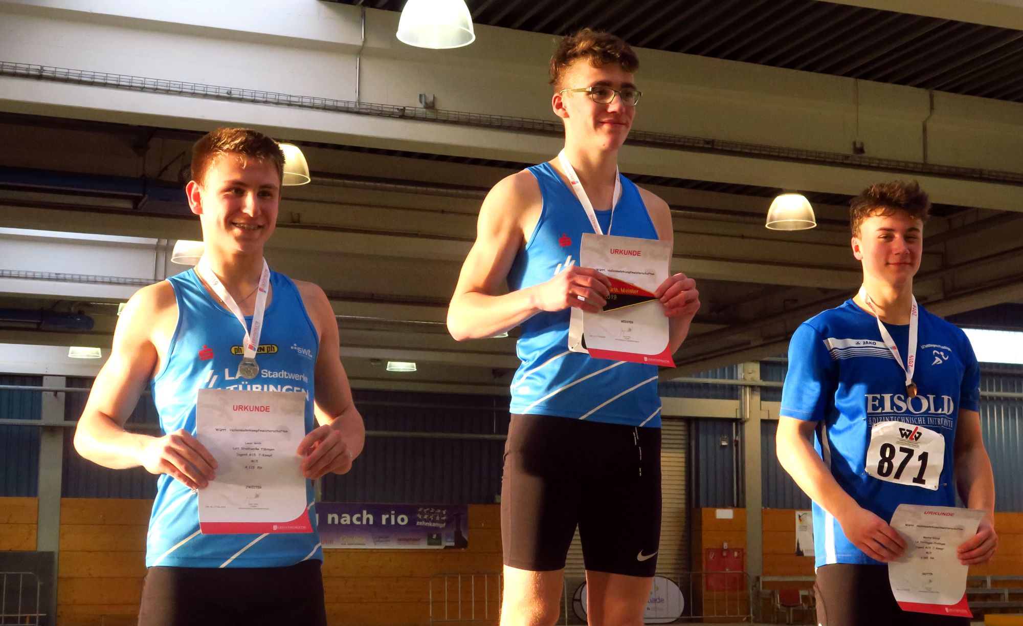 In Abwesen- oder nur „Teilzeit-Anwesenheit“ sämtlicher Kaderathleten über 18 Jahren boten dabei vor allem die Nachwuchswettbewerbe hohes Niveau. Bei den 15-jährigen setzte sich der deutsche Neunkampfmeister Luca Haug (LAV Stadtwerke Tübingen) knapp vor seinem Mannschaftskollegen Leon Groh durch, der mit einem Satz auf 6,34 m im Weitsprung beeindruckte. Bei den Mädchen konnte sich Sandrina Sprengel (LG Steinlach-Zollern) durch einen starken Hochsprung von 1,68 m von Laura Müller (Unterländer LG) absetzen und beeindruckte mit 2.851 Punkten. In der M14 war Bruce Khieosavath (SpVgg Holzgerlingen) dieses Mal, auch dank 1,76 m im Hochsprung, nach einem Hürdenstolperer seines vereinsinternen Dauerrivalen Maik Nold dieses Mal ungefährdet, der so mit Rang drei hinter Thomo Pantis (LAZ Ludwigsburg) zufrieden sein musste.