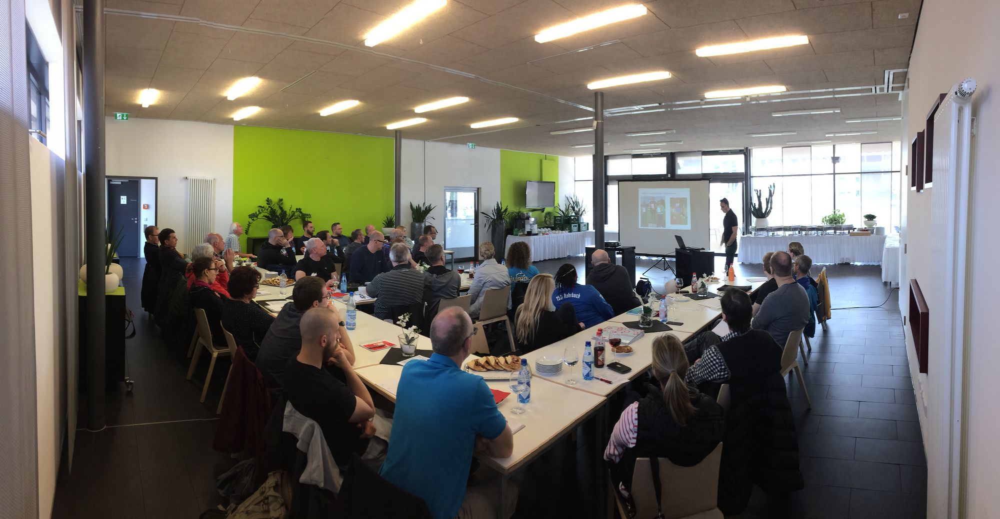 Trotz Zeitumstellung trafen alle angemeldeten Sprung-Trainerinnen und Sprungtrainer pünktlich im Sportrestaurant Neckarpark ein und stellten mit über 40 interessierten Trainerinnen und Trainern einen neuen Teilnehmerrekord auf.