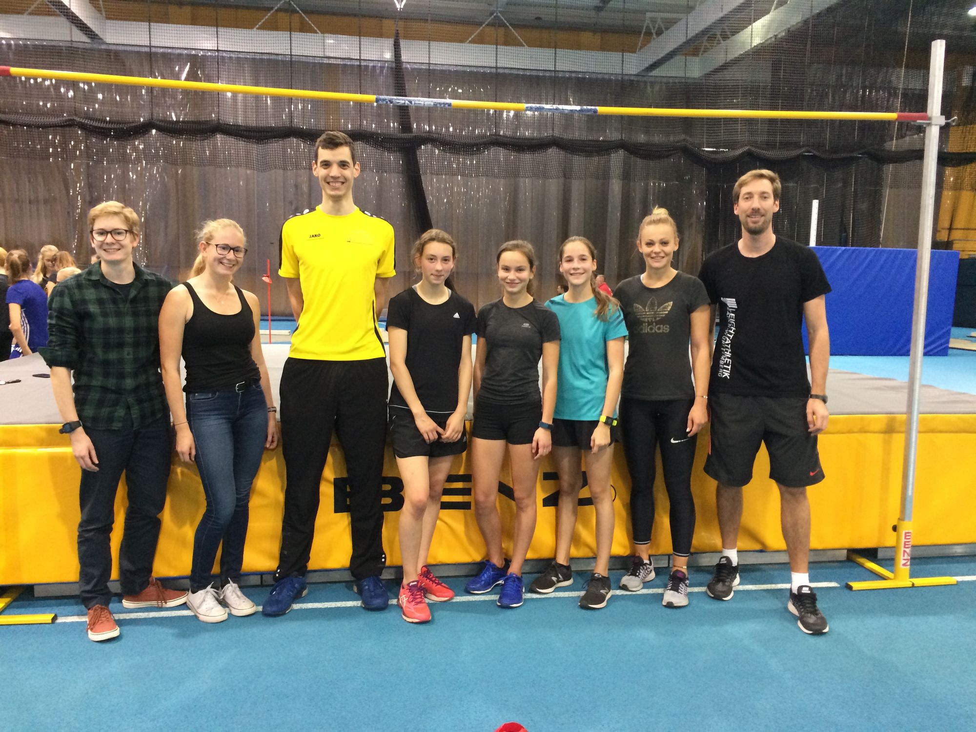 Das Siegerteam aus Winnenden, bestehend aus Lena Schuster, Emma Hetzinger und Marie Klinsmann vom VfL Winterbach, schnupperte zusammen mit ihren Trainerinnen Saskia und Svenja Faust im Training von Hochspringerin Anne Klebsch (LAZ Ludwigsburg; 7. der U23 Europameisterschaft 2017 in Polen; PB: 1,86 m) und Hochspringer David Nopper (Spitzensportgruppe der Landespolizei Baden-Württemberg; LAZ Ludwigsburg; Deutscher Meister Hochsprung 2015; PB: 2,25 m) vorbei.