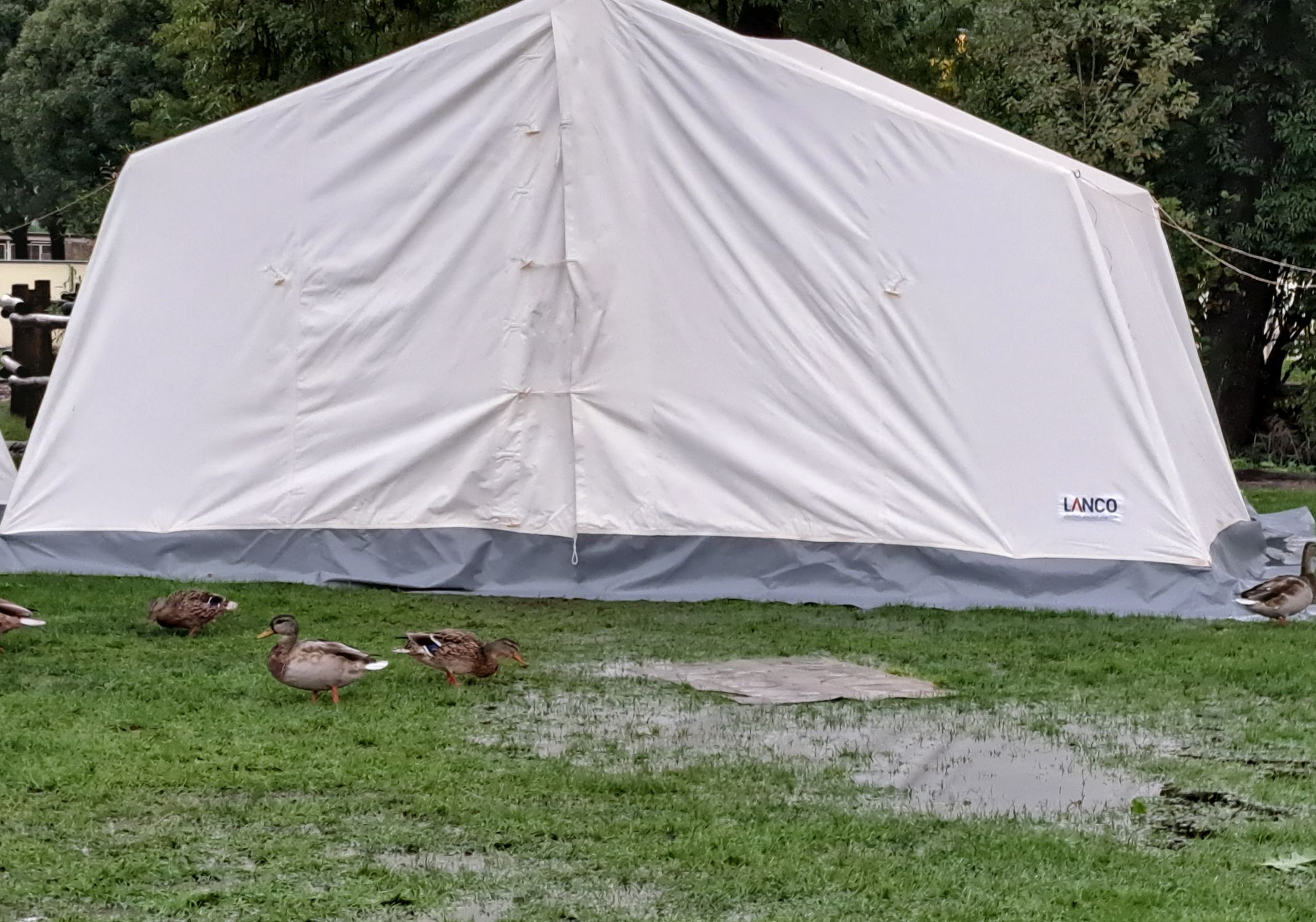Kräftige Gewittergüsse setzten die zugeteilte Camping-Wiese so stark unter Wasser, dass zum ersten Mal in der insgesamt schon 22-jährigen Geschichte die Zelte über Nacht geräumt werden mussten. Das Küchengebäude diente als „kuscheliges“ Asyl und wurde so auch gleich noch Zeuge von Linos Geburtstagsständchen.